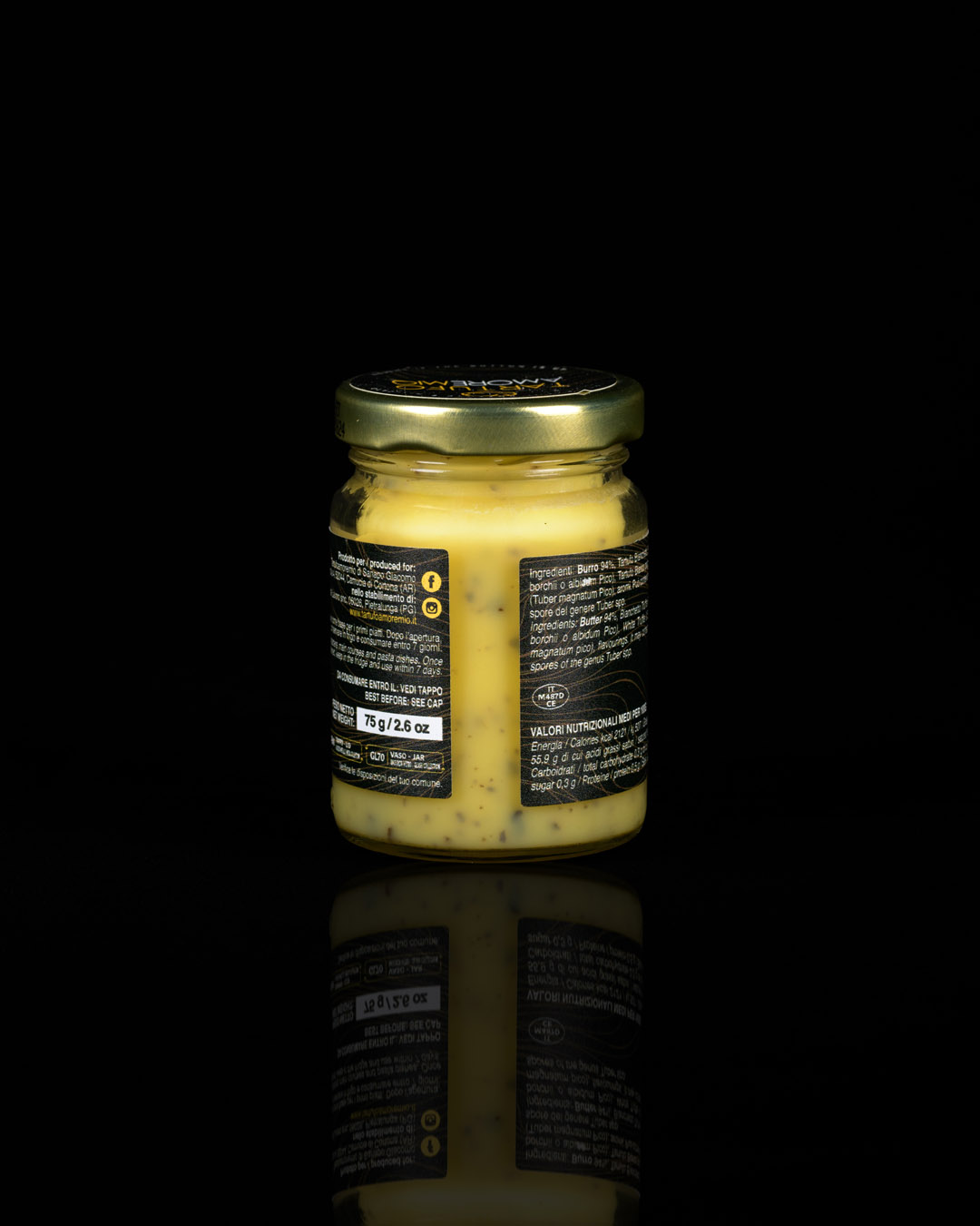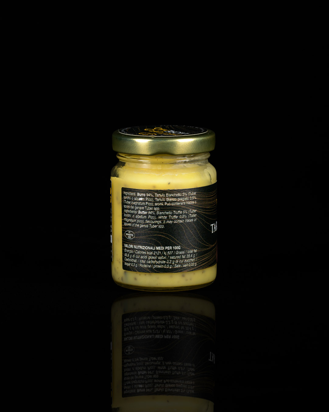 Burro 94%, Tartufo Bianchetto 5% (Tuber borchii o albidum Pico), Tartufo Bianco Pregiato 0,5% (Tuber magnatum Pico), aromi.